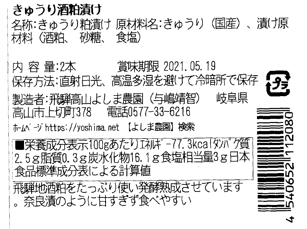 キュウリ酒粕漬