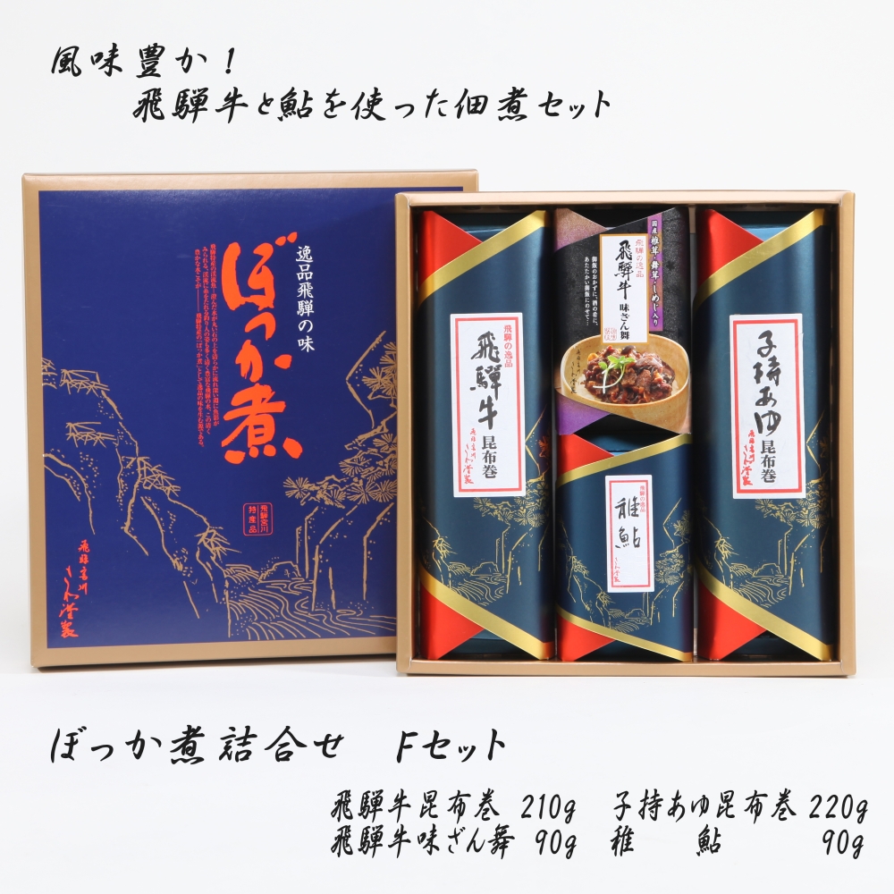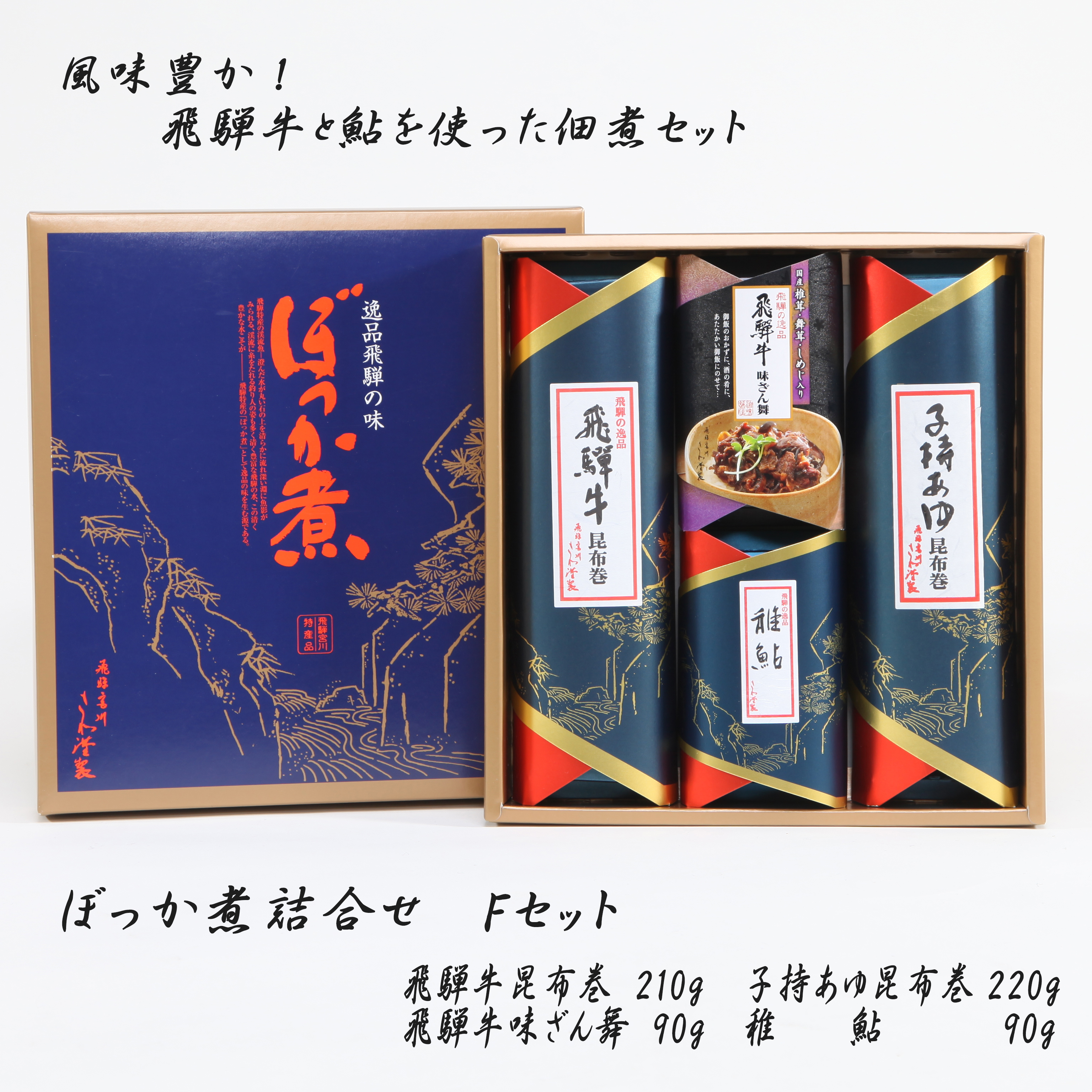 | 商品名 | ぼっか煮詰合せ Fセット《産地直送便》しぐれ煮 飛騨牛 鮎 ※合わせ買い対象外 |