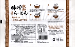 | 原材料名 | 【麺】小麦粉(国内製造)、小麦蛋白、食塩、全卵粉/酒精、かんすい、クチナシ黄色素、加工でんぷん、炭酸ca 【スープ】味噌、醤油、食塩、動植物油脂、ガーリック、ポークエキス、香辛料、ごま、チキンエキス、たん白加水分解物、野菜エキス/調味料(アミノ酸)、カラメル色素、酸味料 (一部に小麦・卵・大豆・さば・豚肉・鶏肉・ごま・ゼラチンを含む) |