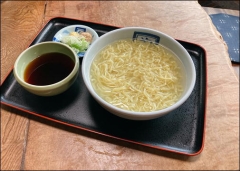 ②別の器にスープをそのまま入れ、お好みでねぎ・ごま・わさび又は生姜を入れて麺をつけてお召し上がり下さい。