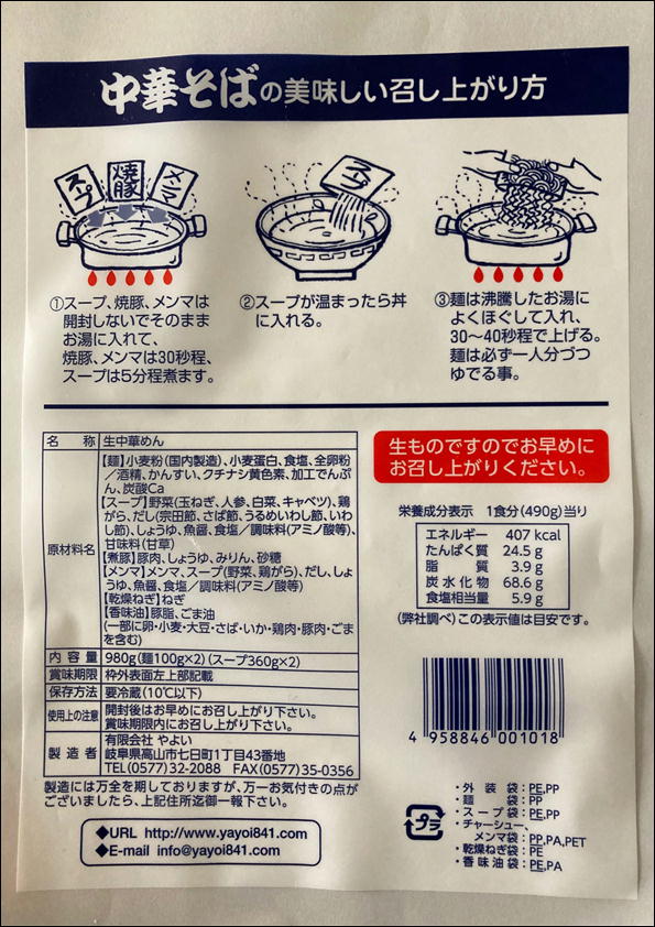 | 内容量 | 980g(麺100g×2)(スープ360g×2)×3袋 |
