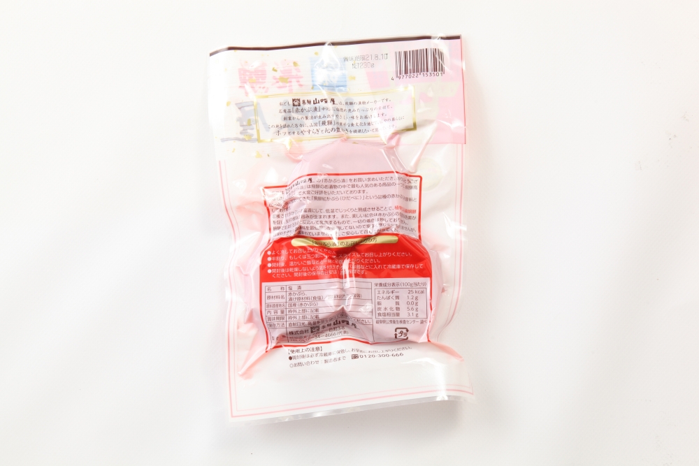| 原材料名 | 赤かぶら、漬け原材料(食塩)、調味料(アミノ酸等) |