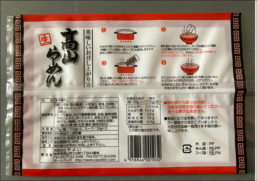 | 賞味期限 | 中華そば14日間、その他30日間 |