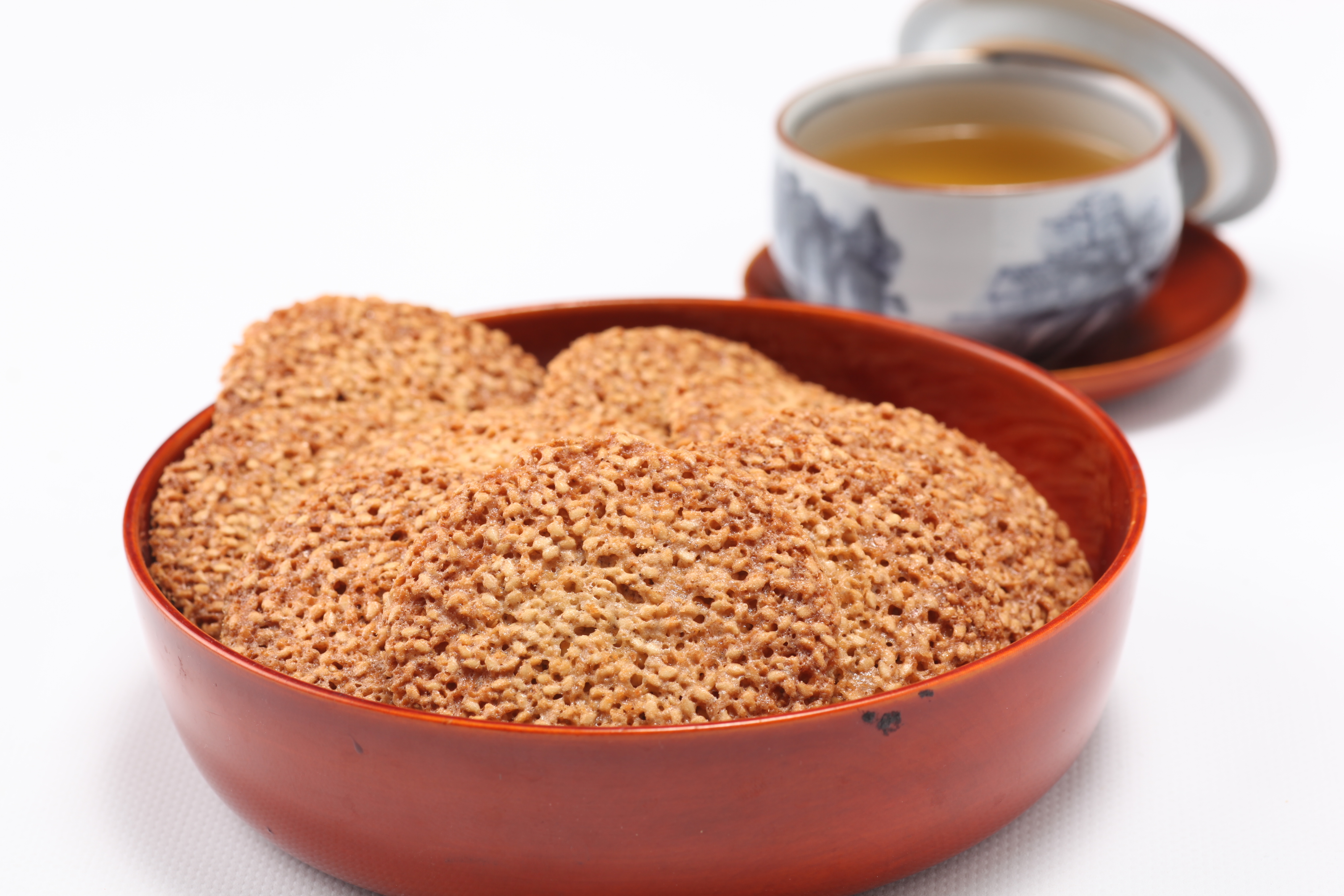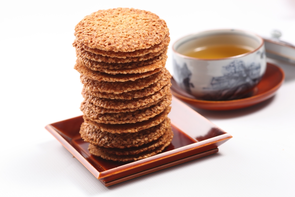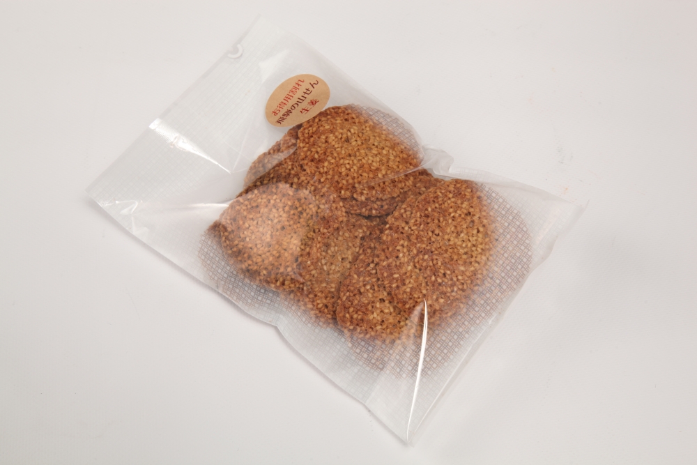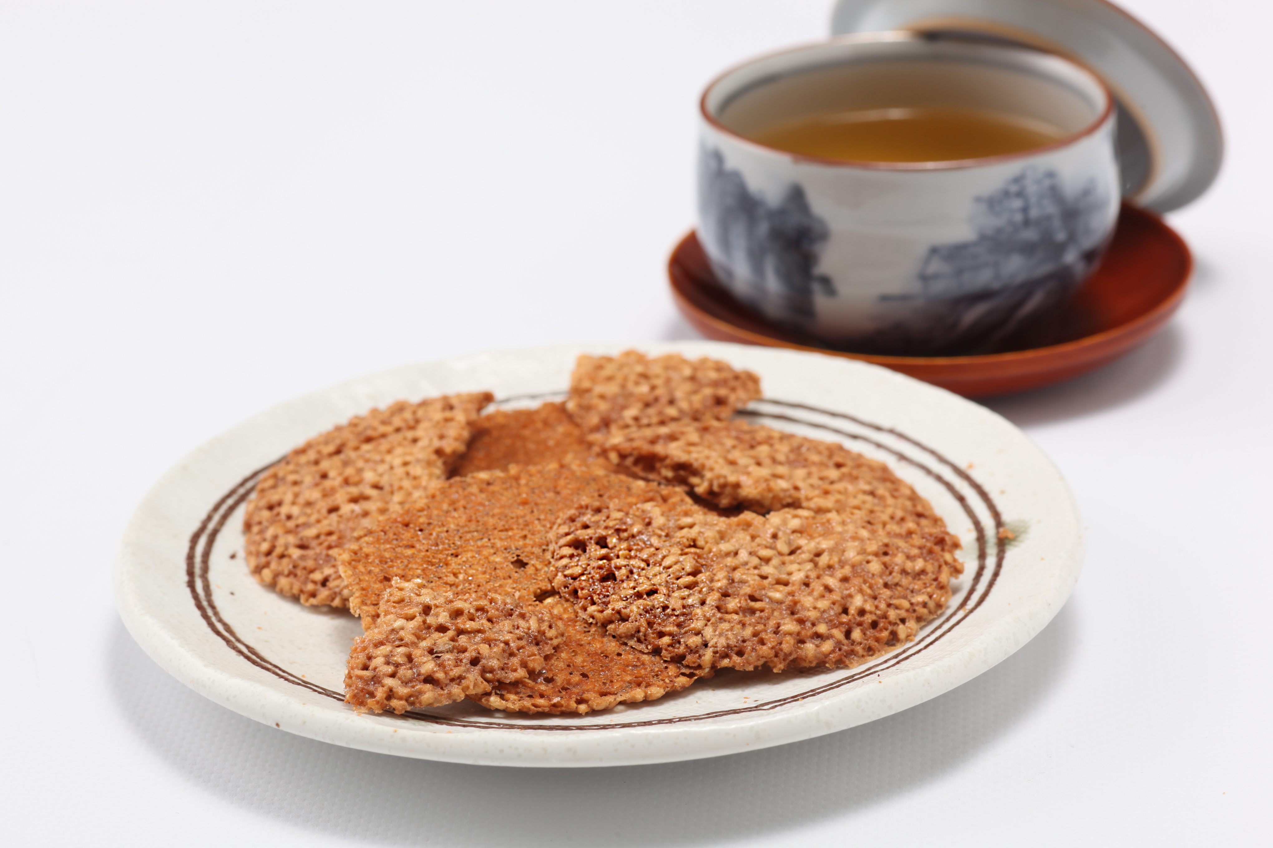 ごまをたっぷりと練り込んだ生地に生姜を加えました。鼻に香るごまの香ばしさと生姜の香りが際立つお菓子です。