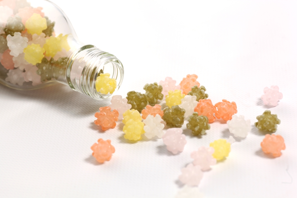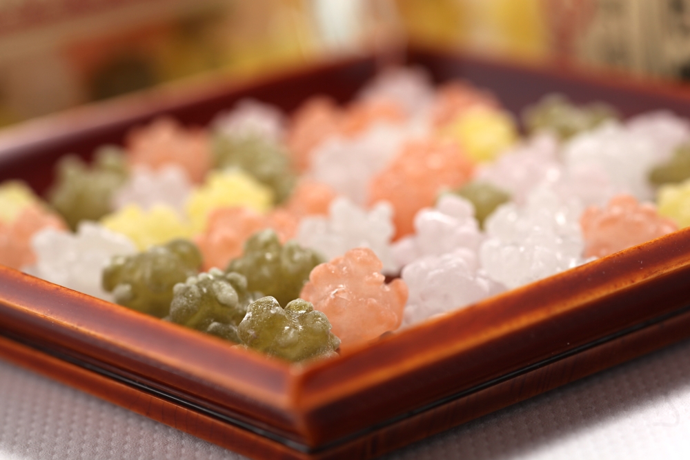 色とりどりの懐かしく可愛らしい金平糖。音羽屋の金平糖は特別に大粒で、甘くカリッとした歯ごたえと、色による其々の風味がお楽しみ頂けます。