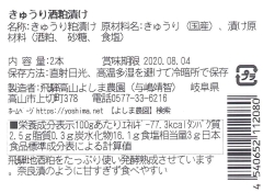 | 原材料名 | 名称:きゅうり粕漬け 原材料名:きゅうり(国産)、漬け原材料(酒粕、 砂糖、 食塩) |