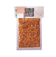 | 原材料名 | にんにく(中国)、漬け原材料[味噌、砂糖、ぶどう糖果糖液糖、醤油(小麦?大豆を含む)、食塩、かつお節、酒精] / 調味料(アミノ酸)、ソルビット、酸味料、増粘多糖類、甘味料(ステビア)、保存料(ソルビン酸K)、着色料(赤102、赤106、黄4、黄5)、ミョウバン、 |