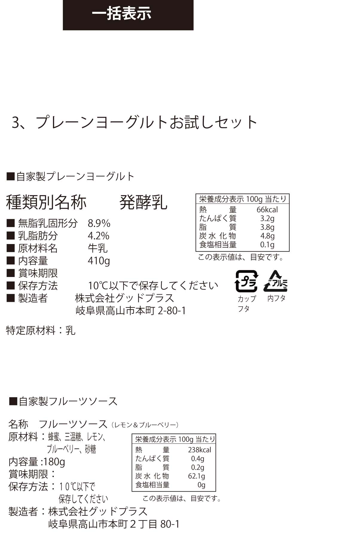 | 商品名 | 【プレーンヨーグルトお試しセット】①自家製プレーンヨーグルト(無糖)②自家製フルーツソース ≪産地直送便≫ |