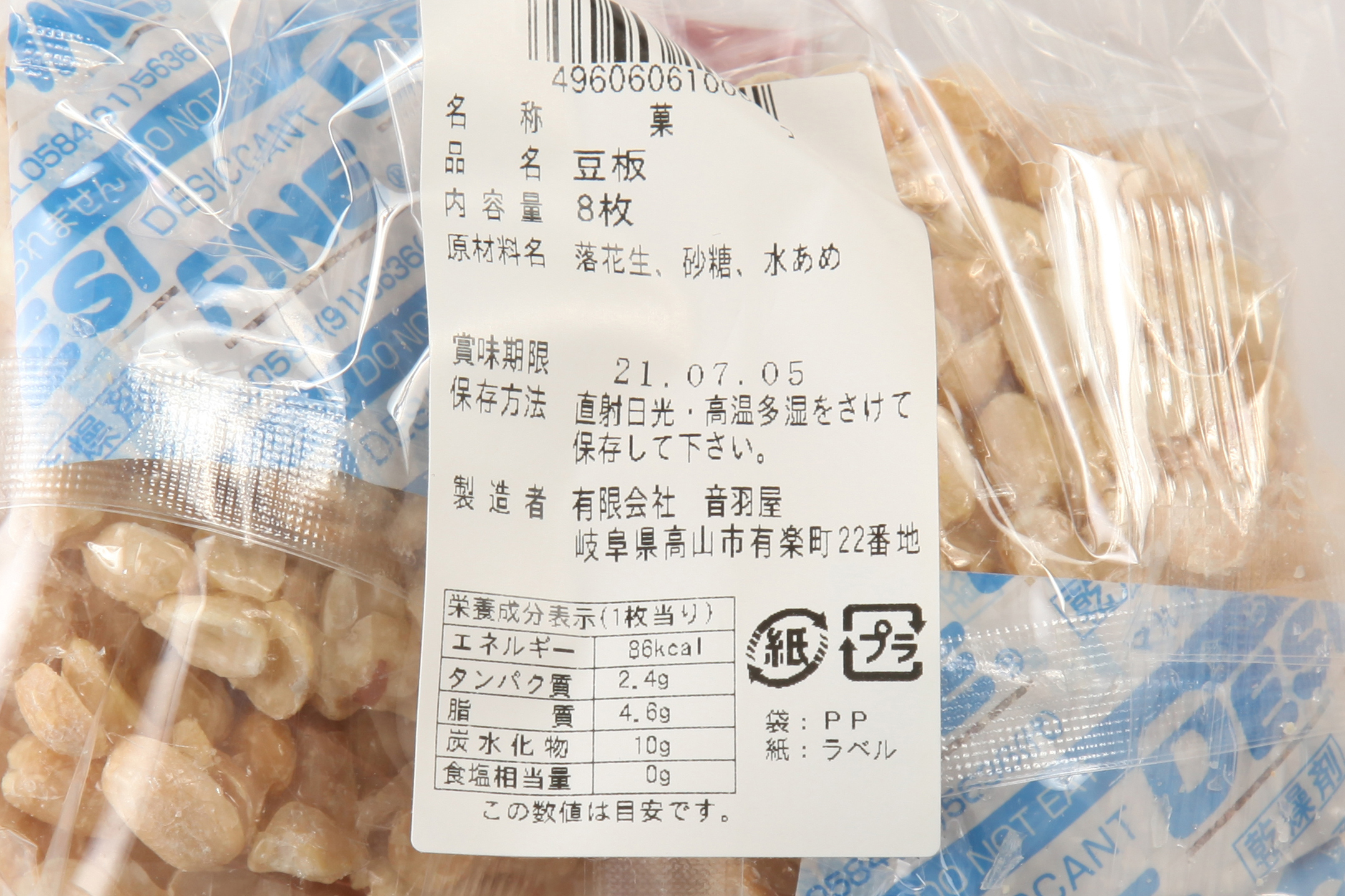飛騨地方の三大駄菓子に数えられる、落花生を飴で板状に固めた古くから作られている有名なお菓子です。音羽屋の豆板はサックリと仕上げていますので、とても食べやすくなっています。