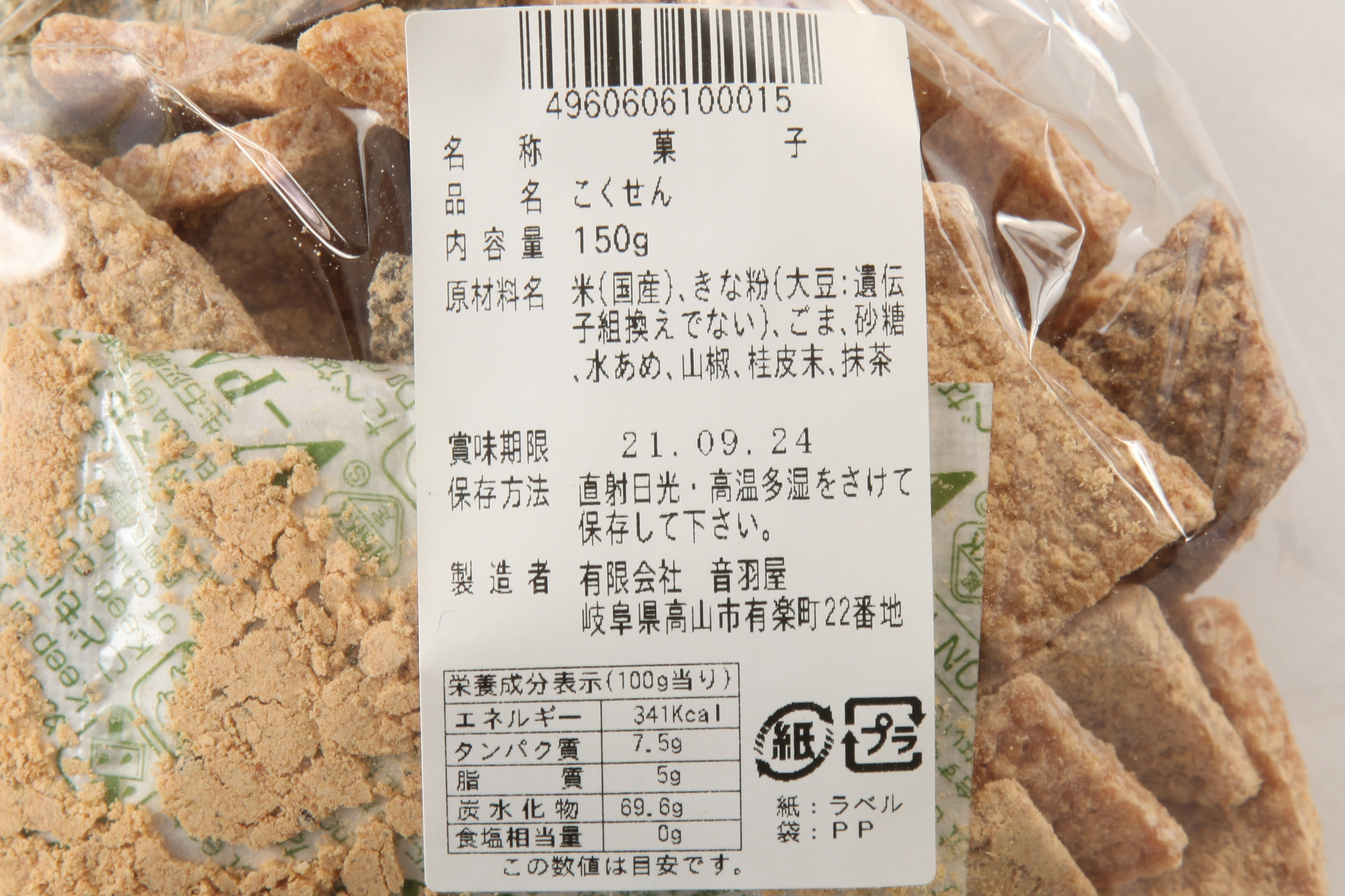 原材料名 米(国産)、きな粉(大豆:遺伝子組み換えでない)、ごま、砂糖、水あめ、山椒、桂皮末、抹茶
