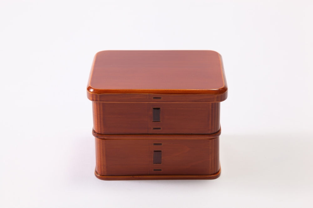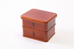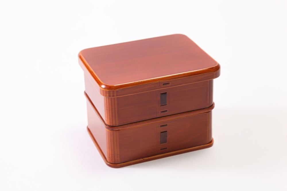 飛騨高山の伝統的工芸品『飛騨春慶』のお弁当箱です。きれいな木目と可愛らしいデザインが、特徴的です。檜を曲げて作っていますので、丈夫で軽くて使い易い弁当箱です。