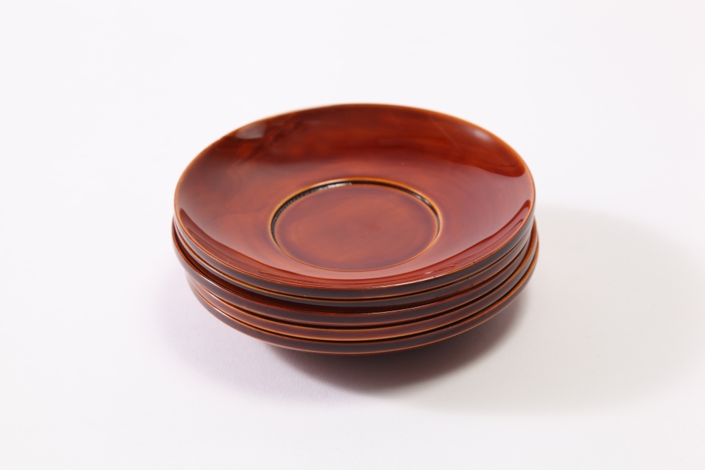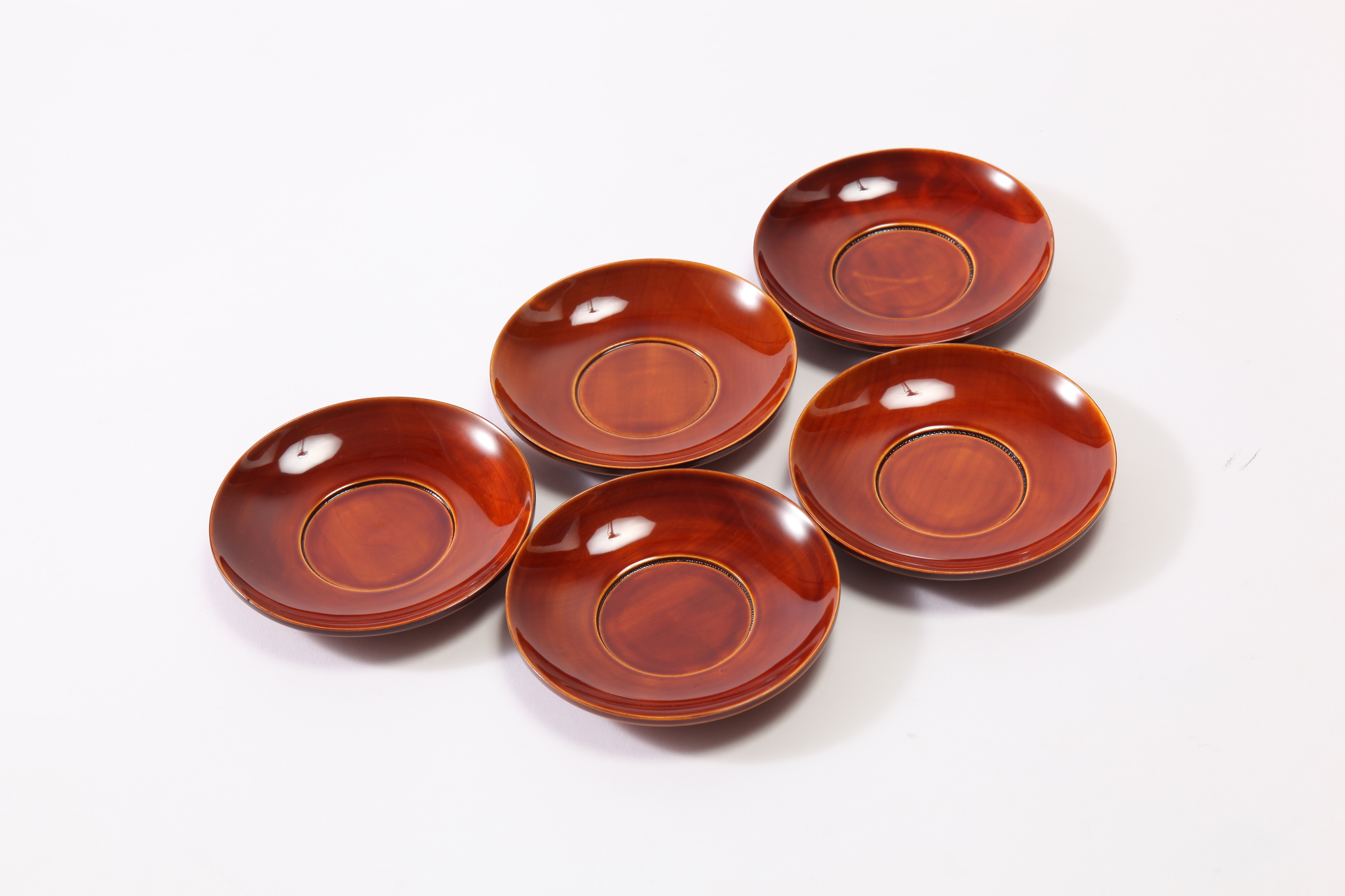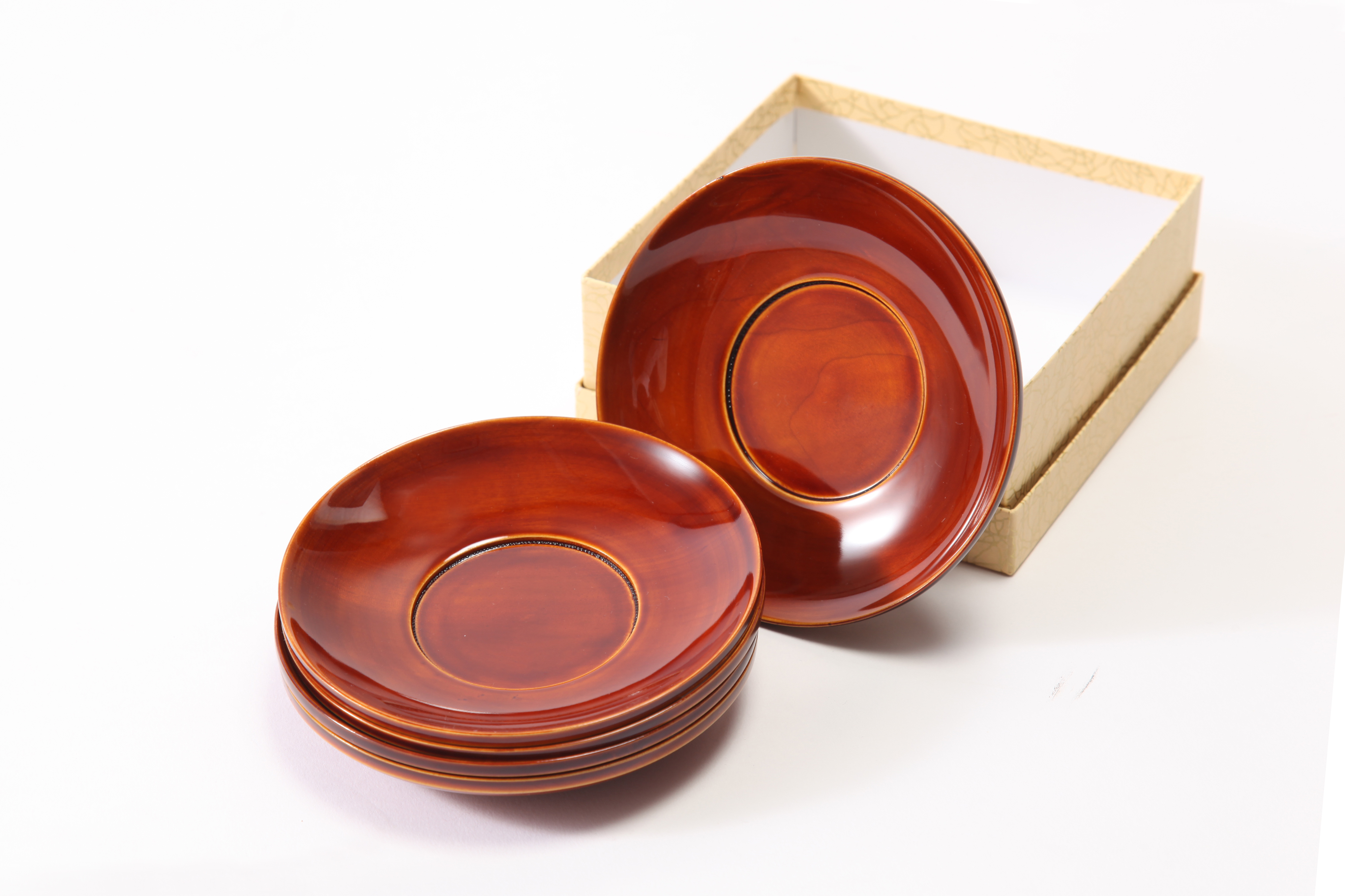 飛騨高山の伝統的工芸品『飛騨春慶』の茶托です。栃の木をくりぬいて作ってあるので、きれいな木目が特徴的です。落ち着いたいろなので、どんなお茶碗にも合います。