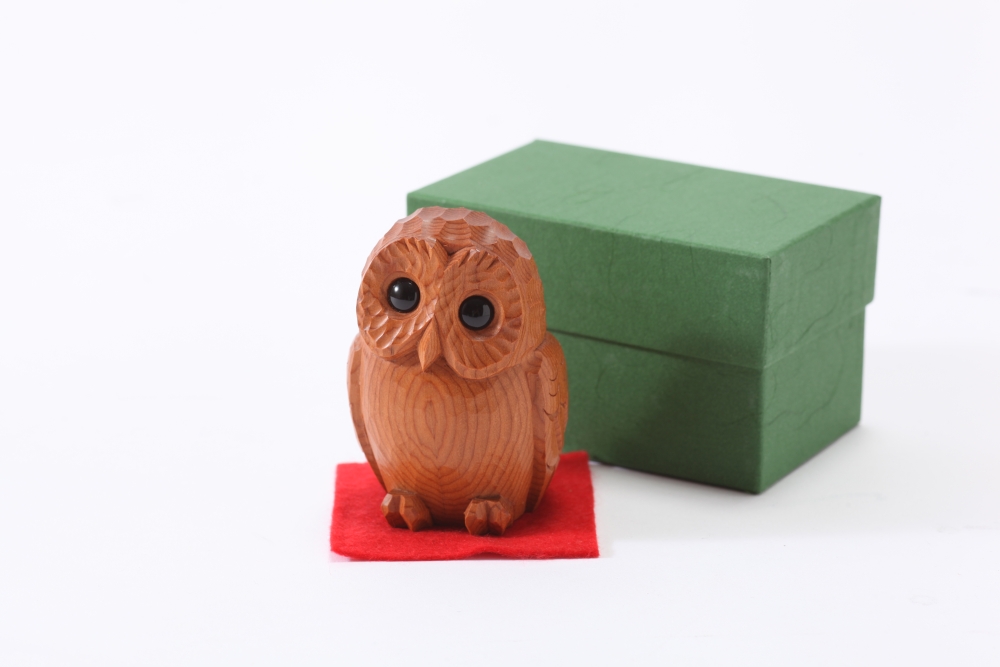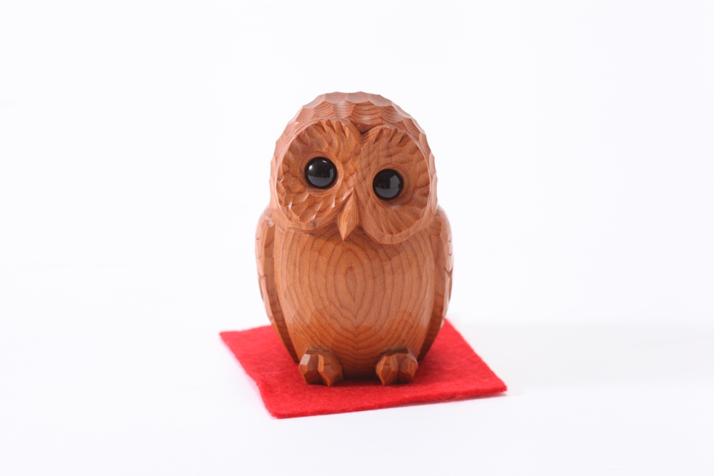 伝統的工芸品の一位一刀彫。福を呼ぶとされる首を傾げた可愛らしい「ふくろう」です。