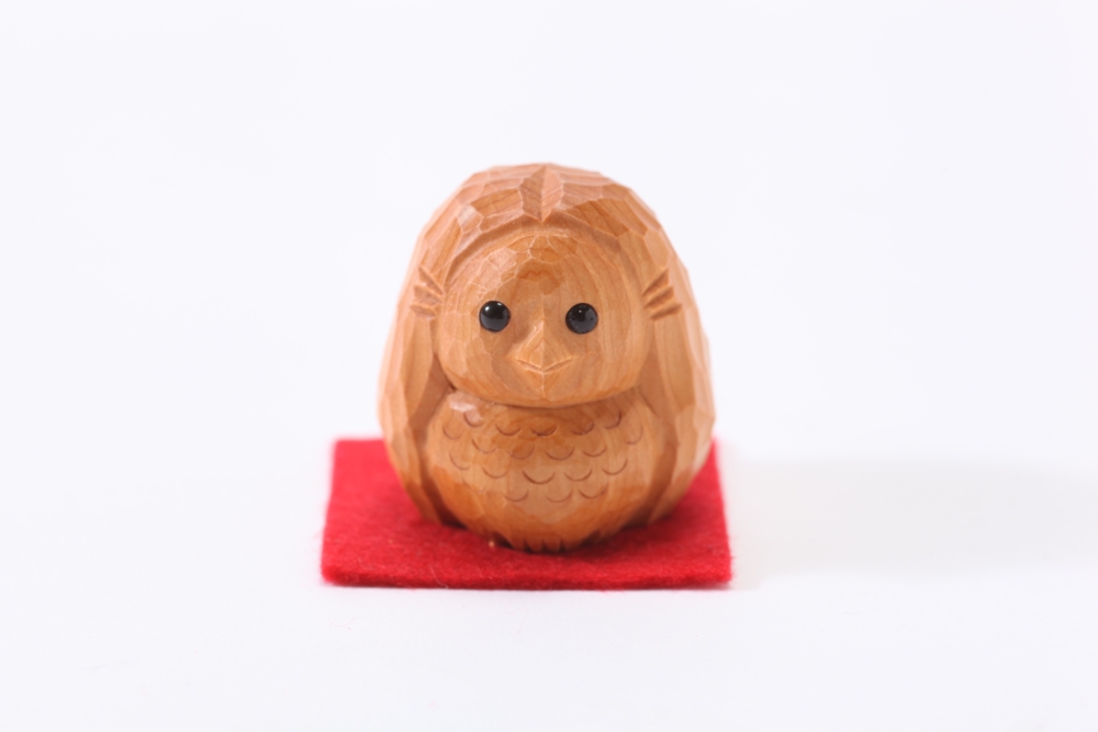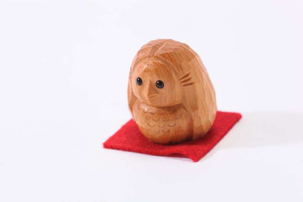 根付 ふくら雀 【一位一刀彫】《鷲塚彫刻》